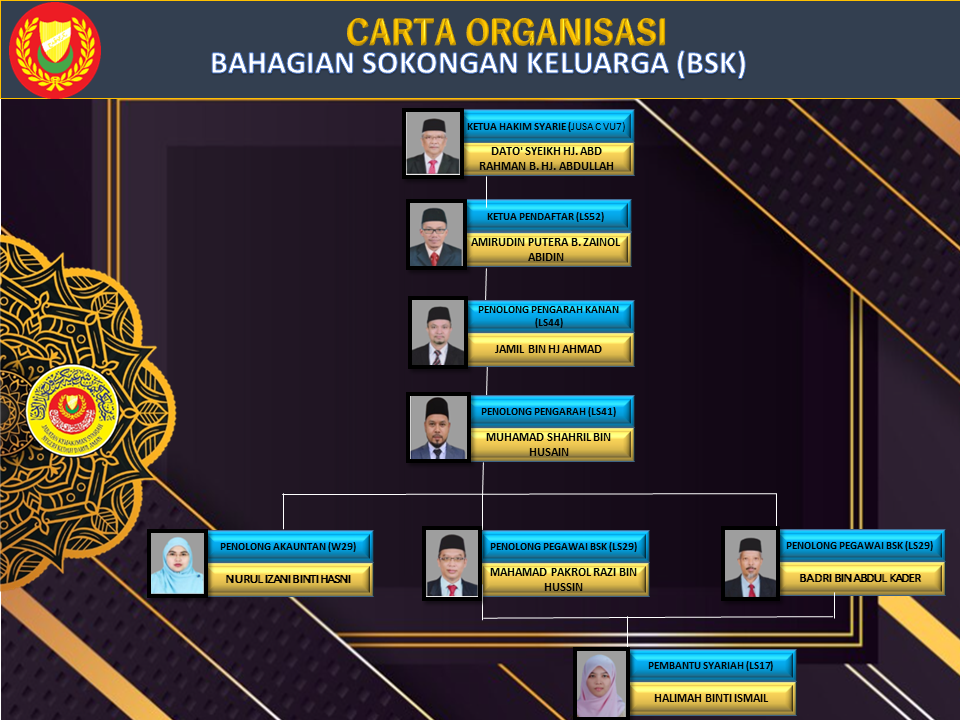 • Memberikan khidmat sokongan kepada keluarga Islam dalam semua hal yang melibatkan Mahkamah Syariah;