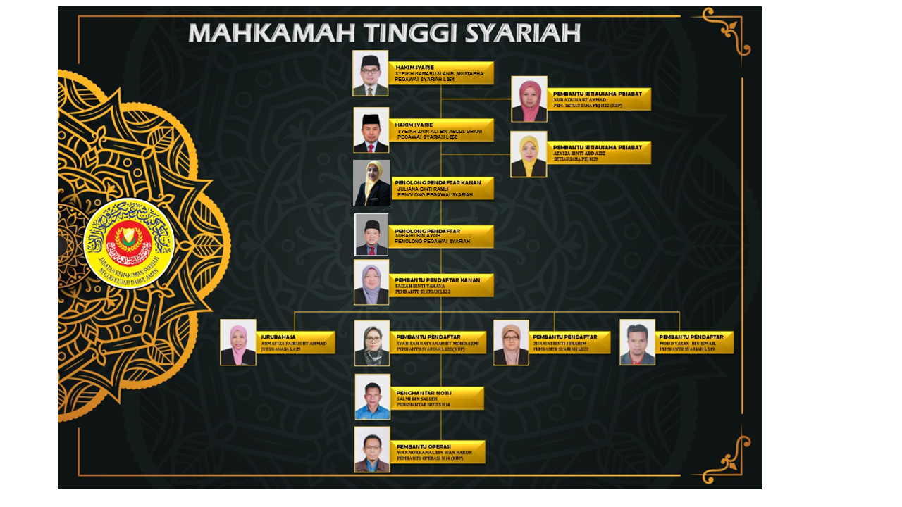 - Menguruskan permohonan pendaftaran dan perbicaraan kes di bawah bidang kuasa Mahkamah Tinggi Syariah